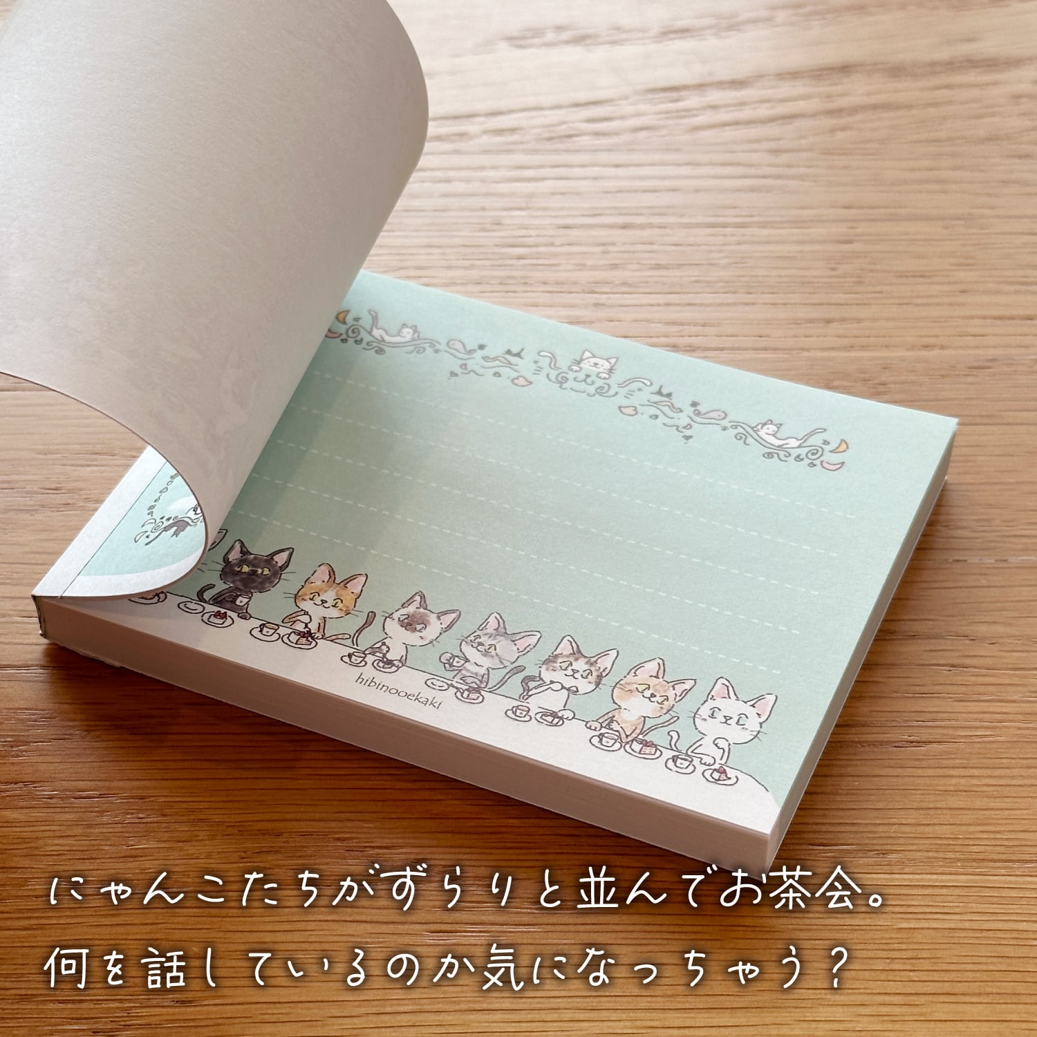 ニャリスタの喫茶店のイラストレーター・絵本作家の「ひびのおえかき」さん作のイラストがかわいいメモパッド。